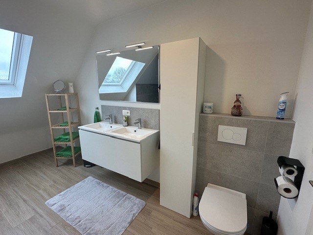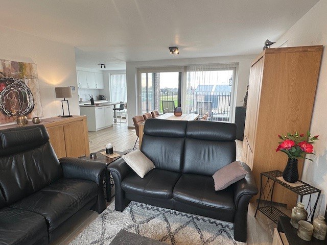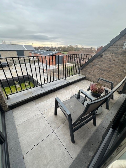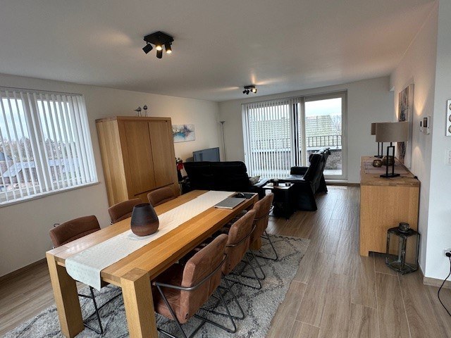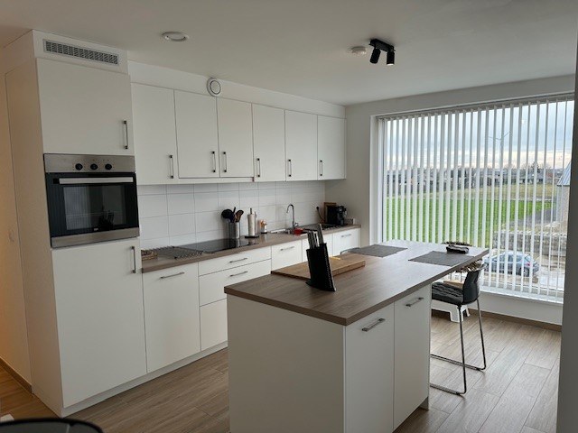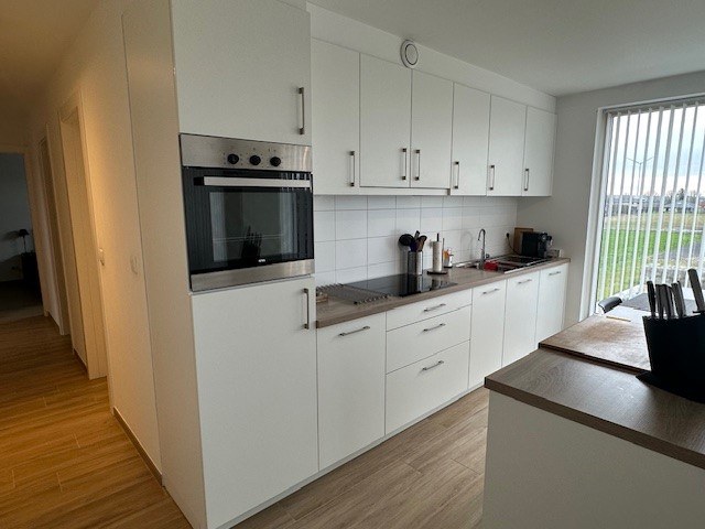 Zeer ruim energiezuinig appartement met 3 slaapkamers, 2 terrassen en autostaanplaatsen. Dit appartement bevindt zich op de 2de verdieping en is uitermate goed onderhouden. Dit recent appartement is zeer centraal gelegen, heeft zicht op de weilanden en ligt op slechts enkele kilometers van de N49. Het appartement bevindt zich op de 2de verdieping (lift) en is als volgt ingedeeld: inkomhal met gastentoilet, ruime en lichtrijke leefruimte en volledig ingerichte open keuken met eiland (met alle toestellen). De leefruimte beschikt over 2 terrassen, beiden toegankelijk via een schuifraam. Achteraan kan u op het Z-terras genieten in alle rust van het zonnetje en vooraan kan u bij te hoge temperaturen genieten in de schaduw. Verder is er nog een praktische berging met aansluiting voor een wasmachine, 3 slaapkamers en een ingerichte badkamer met inloopdouche en lavabomeubel met dubbele lavabo. Als extra troef zijn er voldoende autostaanplaatsen of kan u een extra staanplaats binnen huren (+ 75 euro). De algemene kosten bedragen 100 euro (inclusief verwarming). Er is vloerverwarming aanwezig met warmtepomp en zonnepanelen (gemeenschappelijk). |